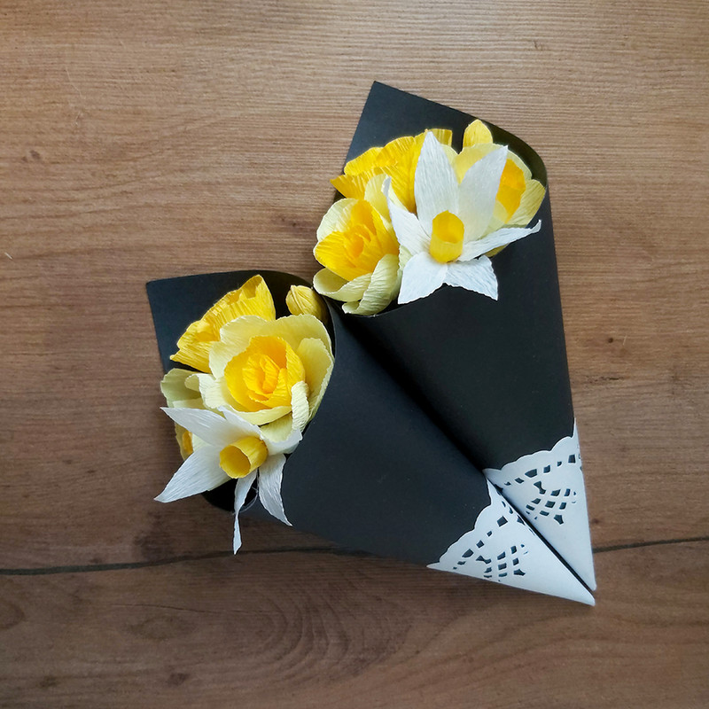 سایر توضیحات: گیفت گل نرگس هدیه ای خاص برای کسانی که عاشق گل نرگس هستند می باشد. گلهای زیبا از جنس کاغذکشی بوده و به همین خاطر بسیار مشابه گل طبیعی می باشند و دورپیچ گلها از مقوای فابریانو مشکی و گیپور کاغذی سفید می باشد.