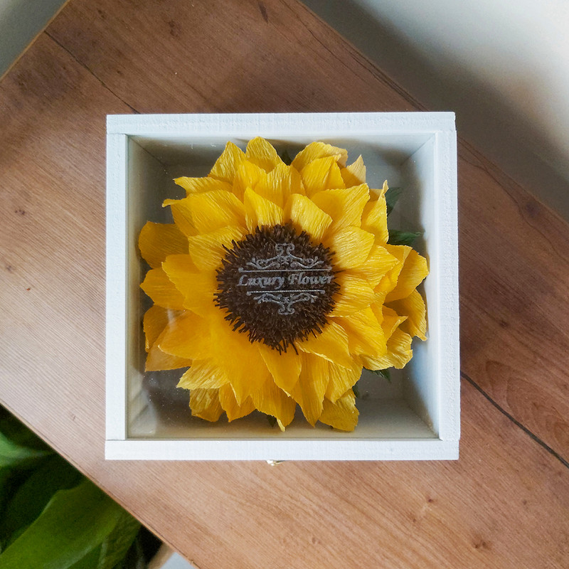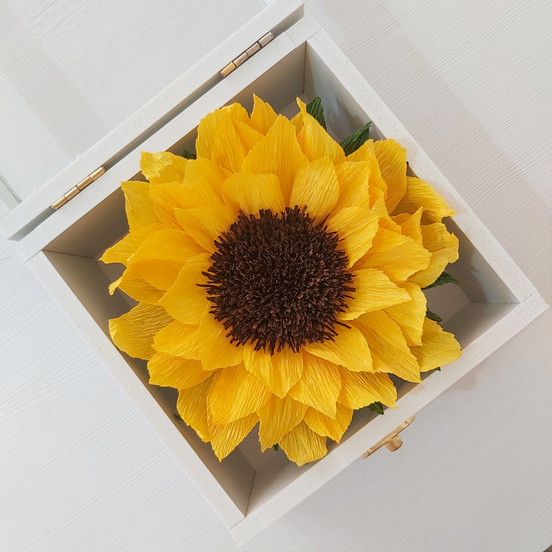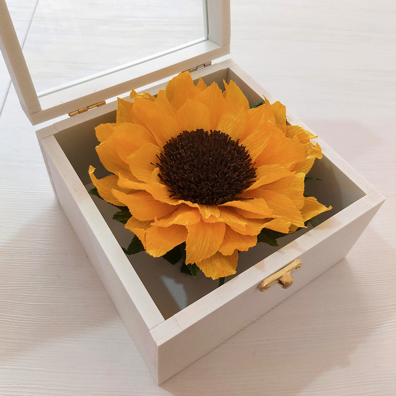 جنسچوبسایر توضیحاتباکس از جنس چوب باکیفیت و درب باکس شیشه ای می باشد، گل آفتابگردان زیبا از جنس کاغذکشی و بسیار مشابه گل طبیعی می باشد.ابعاد15x15x9.4 سانتیمتر