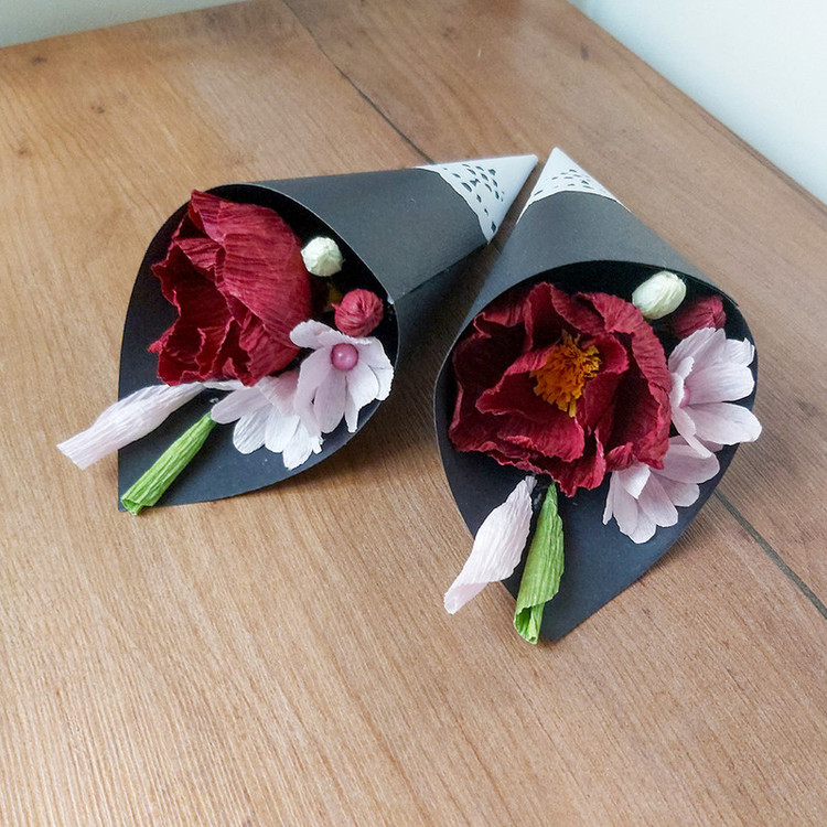 سایر توضیحات: گیفت گل پیونی هدیه ای خاص برای عزیزانتان می باشد. گلهای زیبا از جنس کاغذکشی بوده و به همین خاطر بسیار مشابه گل طبیعی می باشند و دورپیچ گلها از مقوای فابریانو مشکی و گیپور کاغذی سفید می باشد.