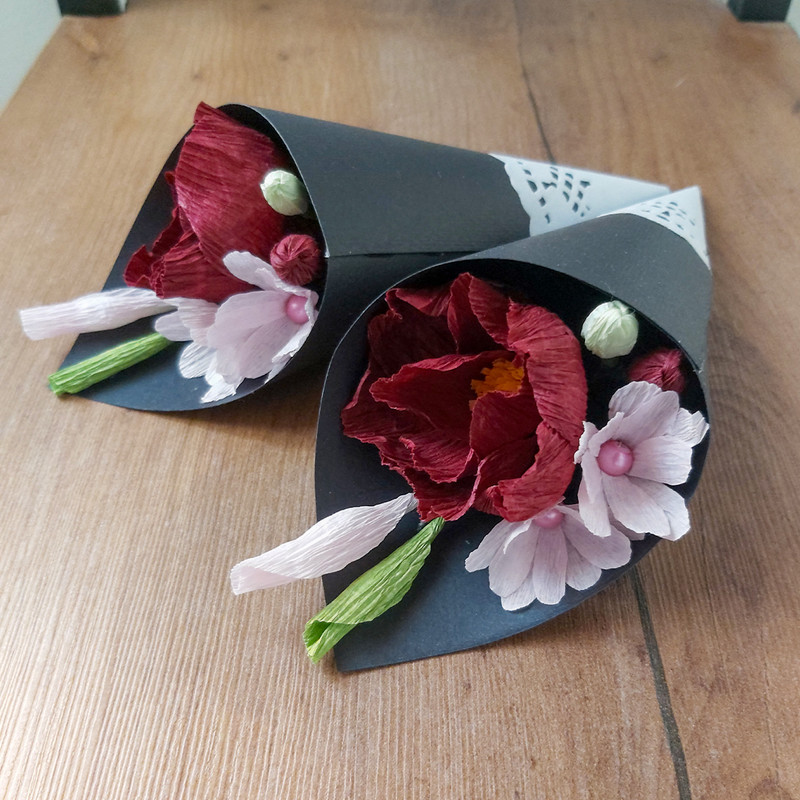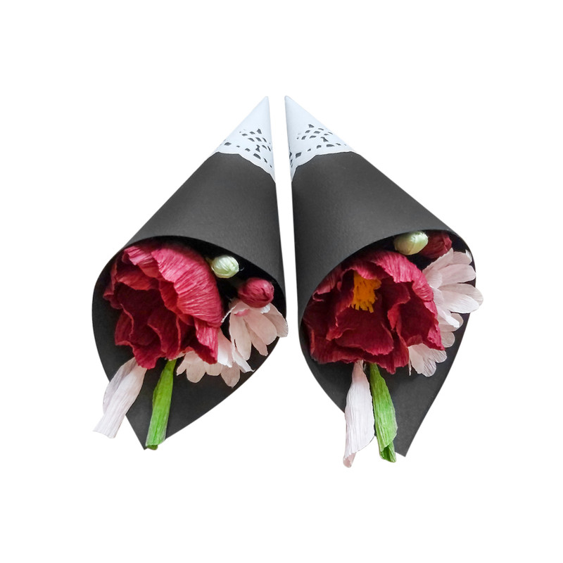 سایر توضیحات: گیفت گل پیونی هدیه ای خاص برای عزیزانتان می باشد. گلهای زیبا از جنس کاغذکشی بوده و به همین خاطر بسیار مشابه گل طبیعی می باشند و دورپیچ گلها از مقوای فابریانو مشکی و گیپور کاغذی سفید می باشد.