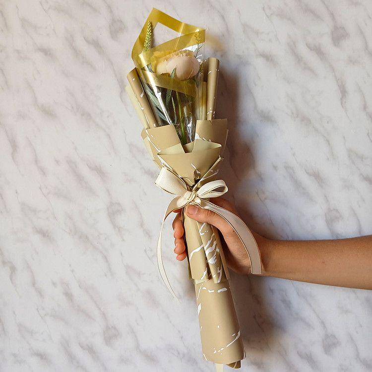 دسته گل تک شاخه گل رز صد برگ هدیه ای زیبا ماندگار و اقتصادی می باشد. گل زیبای آن وارداتی و با کیفیت بالا بوده و به زیبایی کاغدپیچی شده است و تقدیم حضورتان میشود.