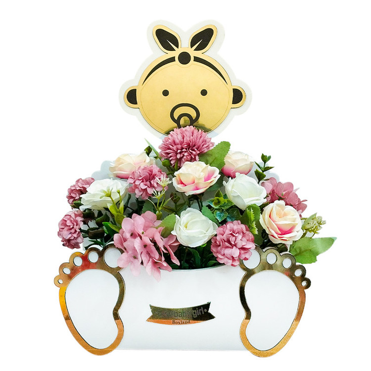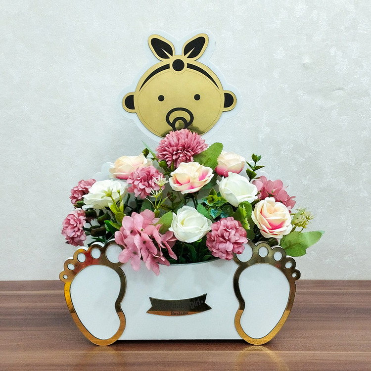 باکس نوزاد دختر از جنس چوب باکیفیت و ضخیم بوده و دیزاین شده با گلهای مصنوعی وارداتی و با کیفیت می باشد. این باکس هدیه زیبا و خاص برای تبریک تولد نوزاد می باشد.