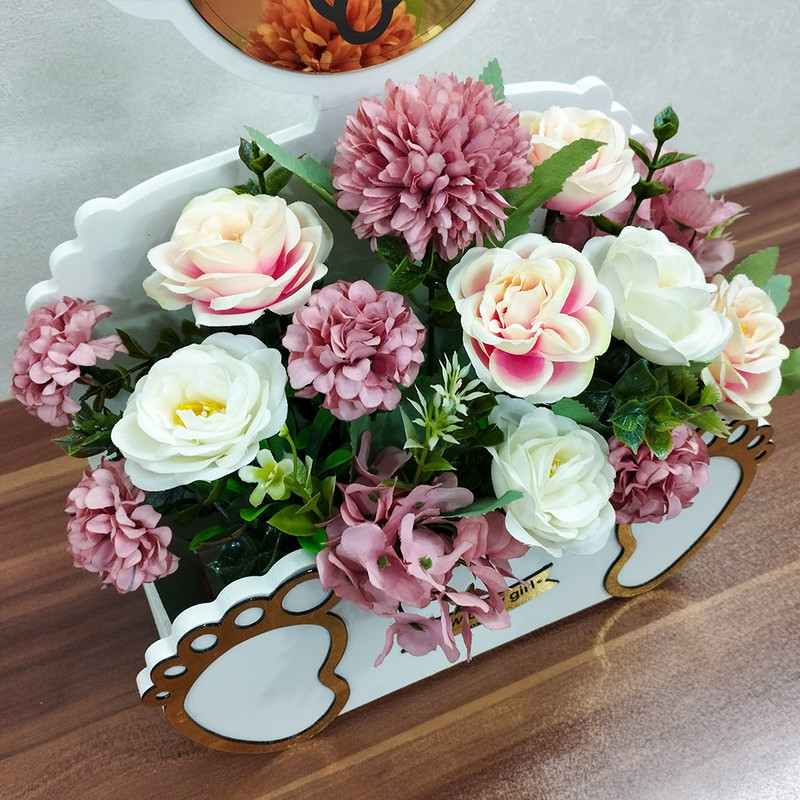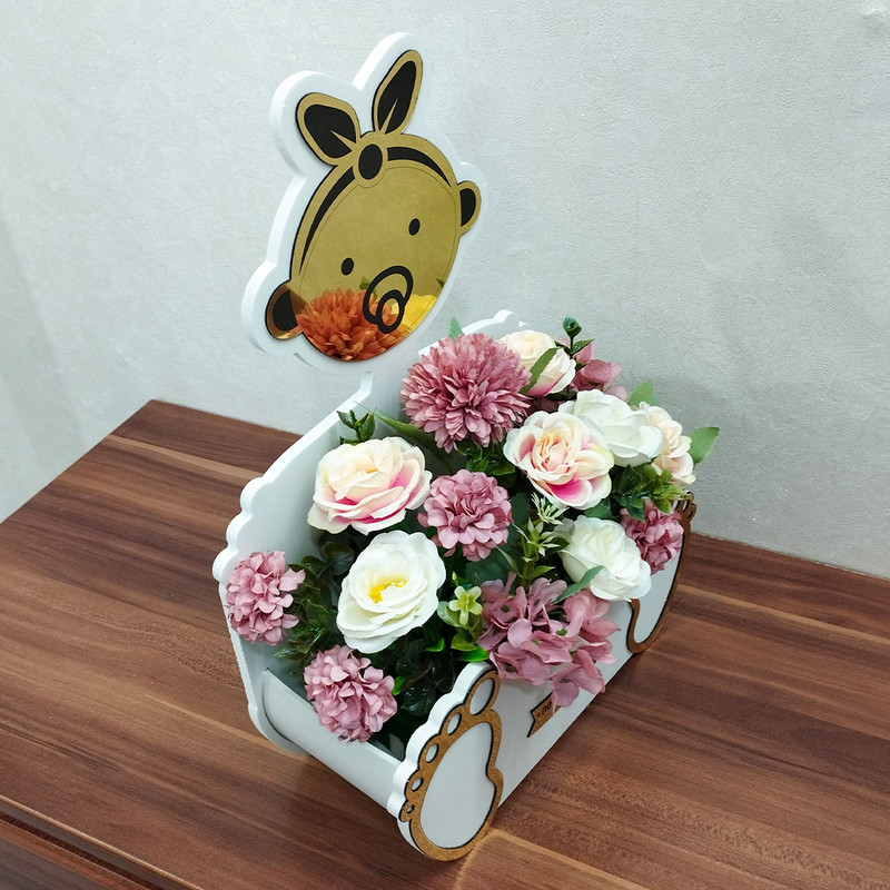 سایر توضیحات: باکس نوزاد دختر از جنس چوب باکیفیت و ضخیم بوده و دیزاین شده با گلهای مصنوعی وارداتی و با کیفیت می باشد. این باکس هدیه زیبا و خاص برای تبریک تولد نوزاد می باشد.