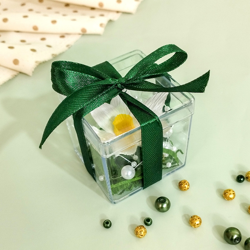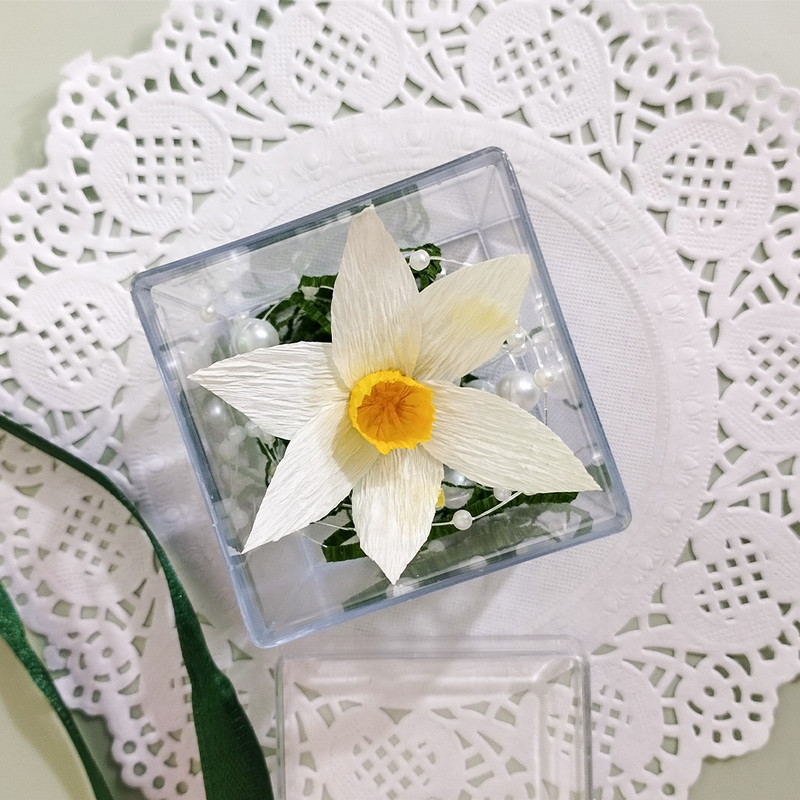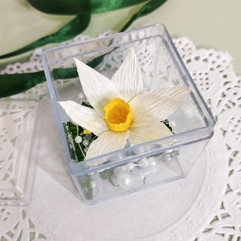 باکس از جنس پلکسی بوده و گل نرگس زیبا از جنس کاغذکشی می باشد.