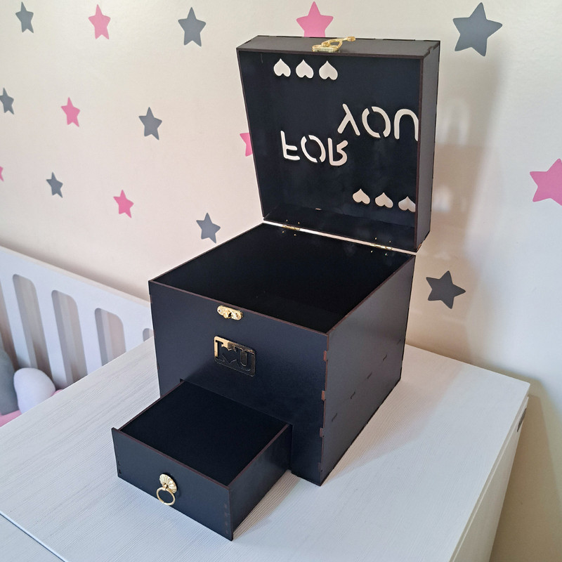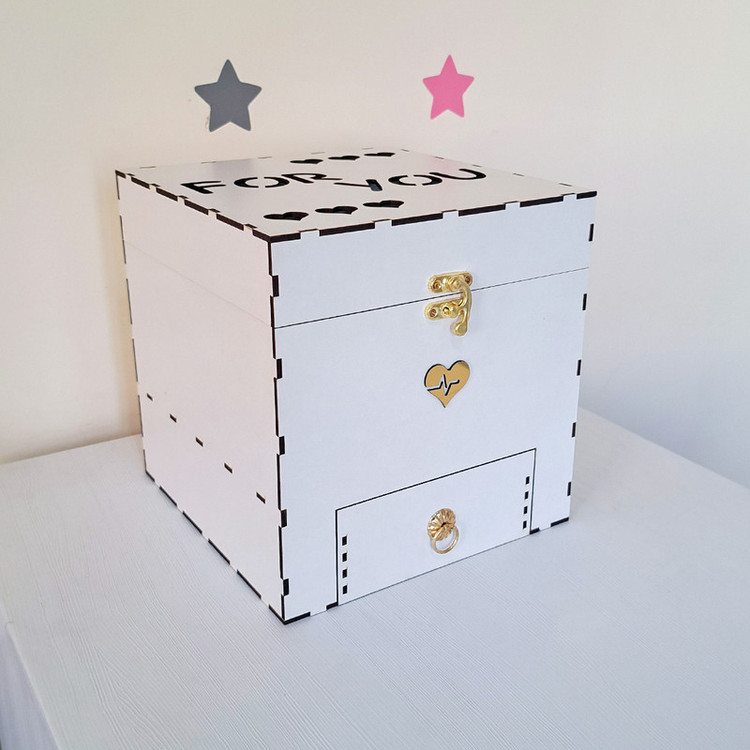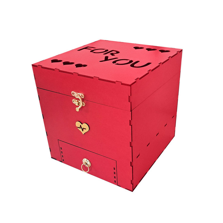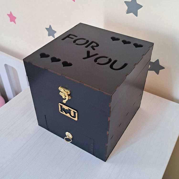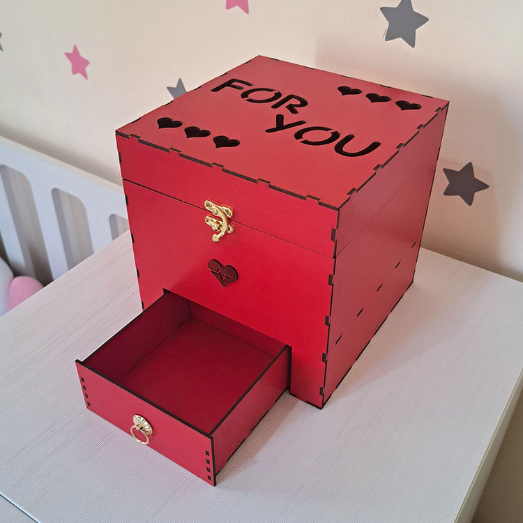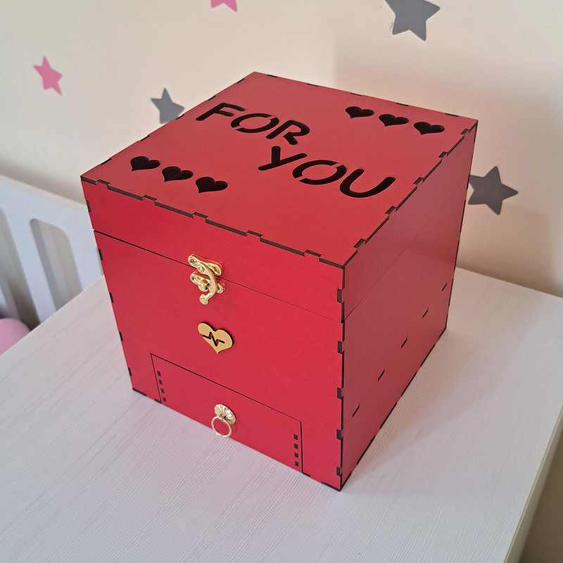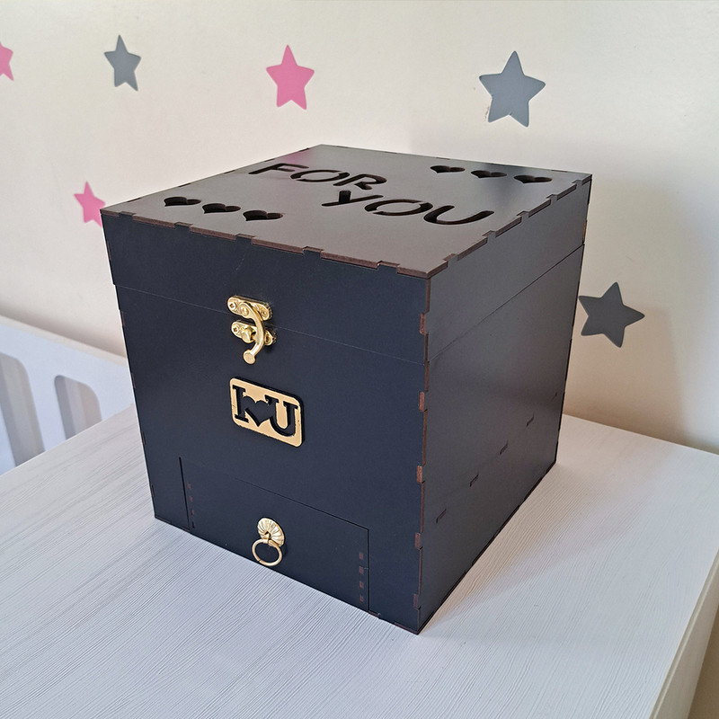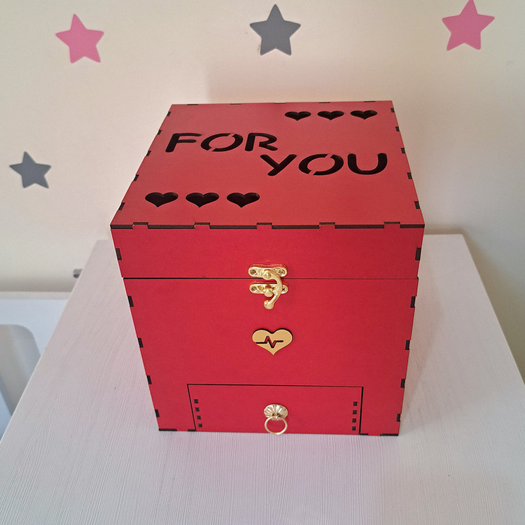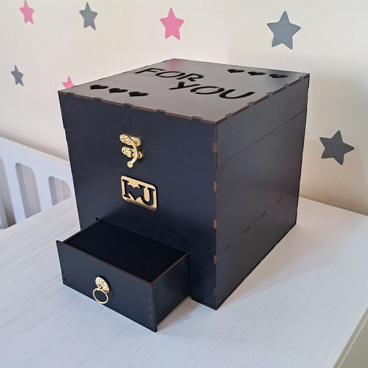 سایر توضیحات: باکس گل مدل FOR YOU درب از بالا بوده و کشودار می باشد. ابعاد کشو این کار 13.5 در 13.5 با ارتفاع 5.5 سانتی متر می باشد. این باکس مناسب دیزاین با گل طبیعی، مصنوعی و خشک بوده و از قسمت کشو آن میتوانید برای قرار دادن هدیه استفاده نمایید.