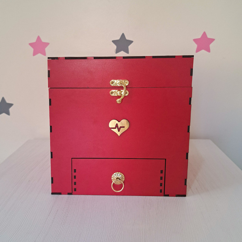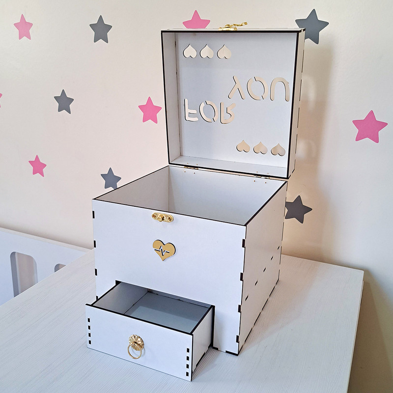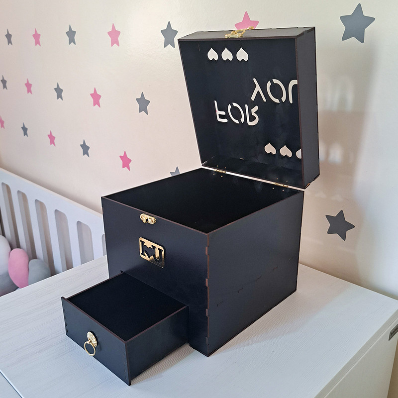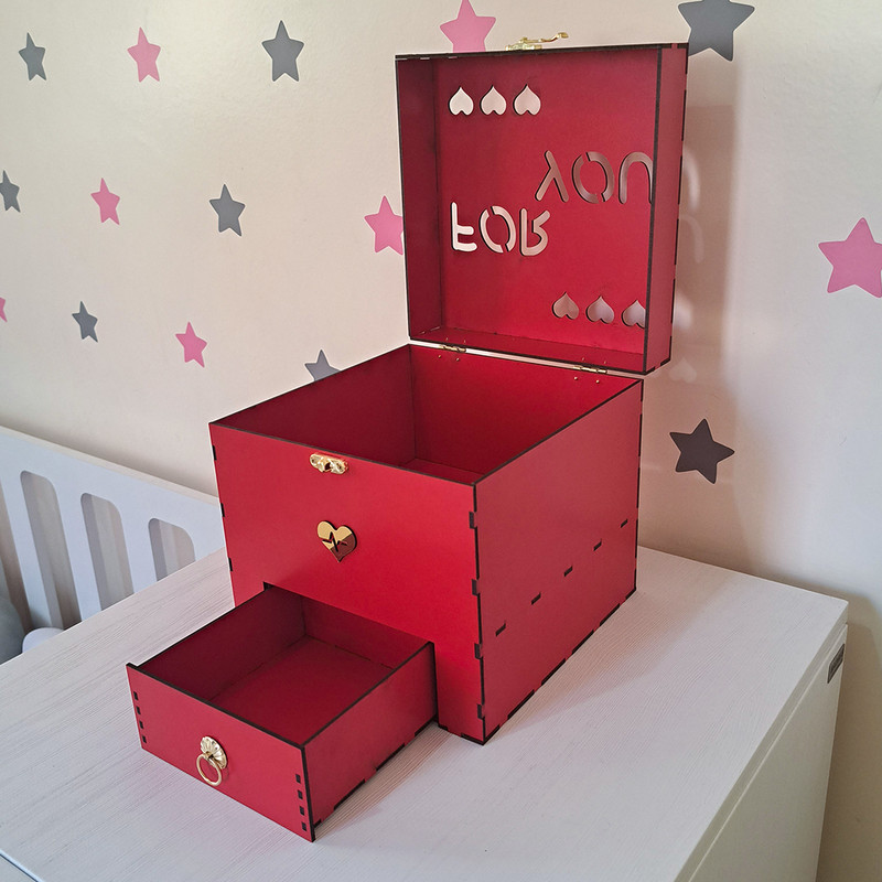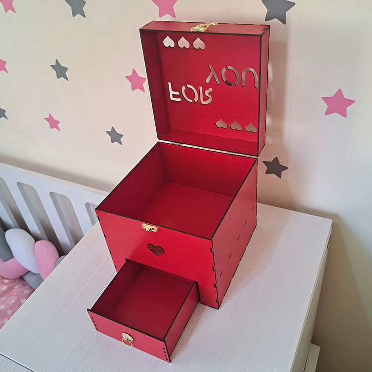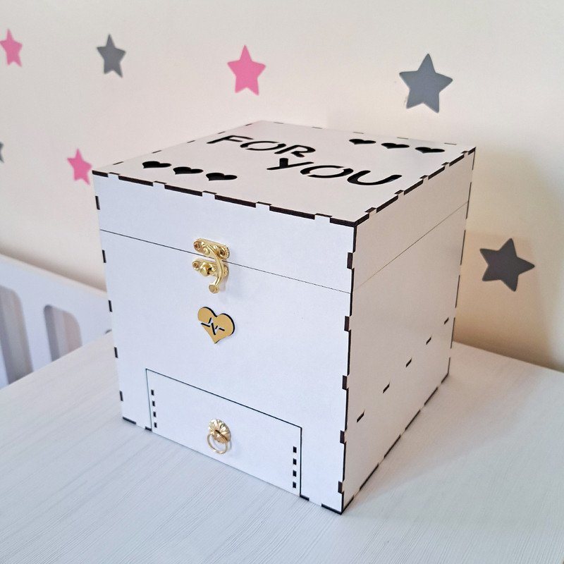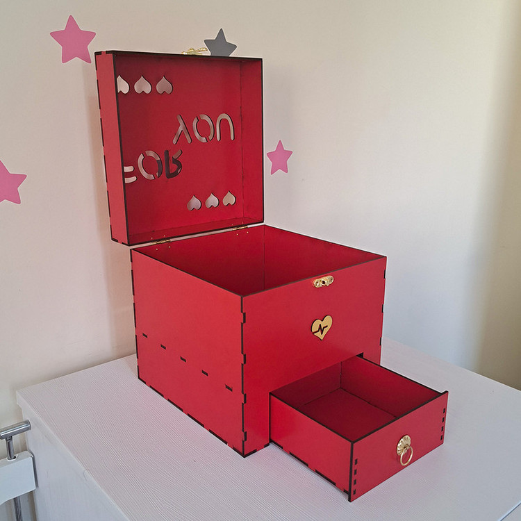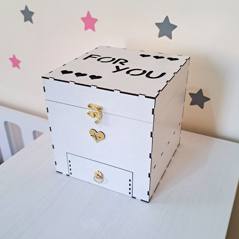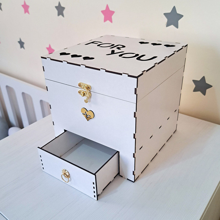سایر توضیحات: باکس گل مدل FOR YOU درب از بالا بوده و کشودار می باشد. ابعاد کشو این کار 13.5 در 13.5 با ارتفاع 5.5 سانتی متر می باشد. این باکس مناسب دیزاین با گل طبیعی، مصنوعی و خشک بوده و از قسمت کشو آن میتوانید برای قرار دادن هدیه استفاده نمایید.