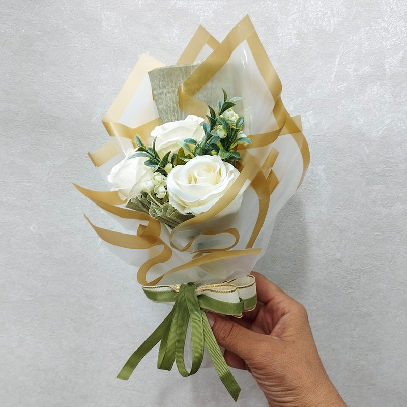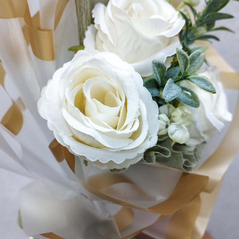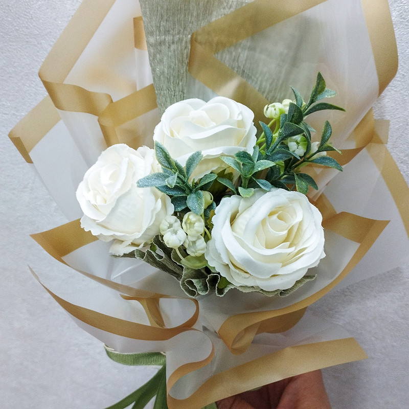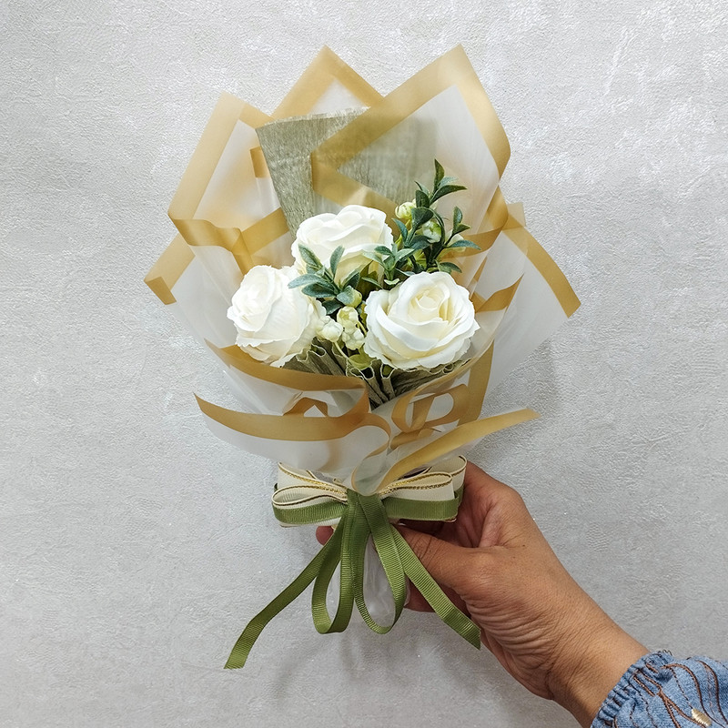 دسته گل رز هدیه مناسب و اقتصادی برای روز معلم روز دختر روز زن و تمامی مناسبتها. 3 شاخه گل رز مصنوعی و پرکننده در دسته گل استفاده شده است. محصول با بسته بندی در جعبه تقدیمتان میگردد.