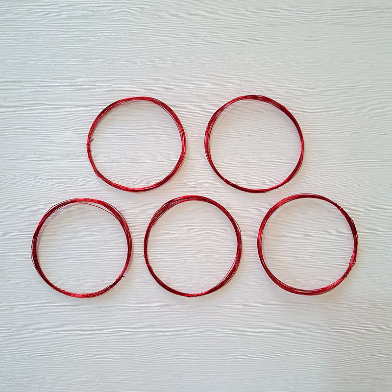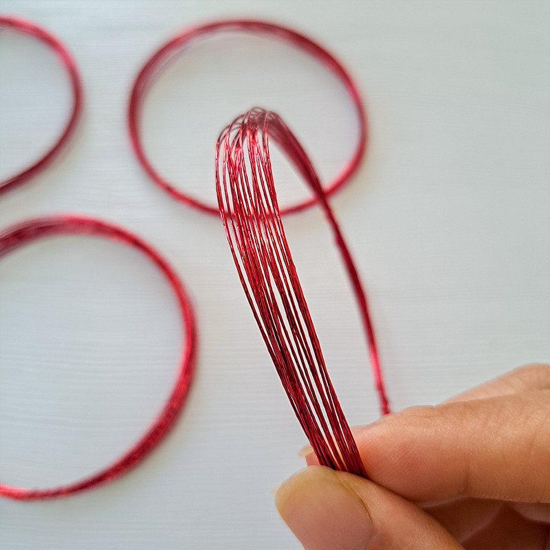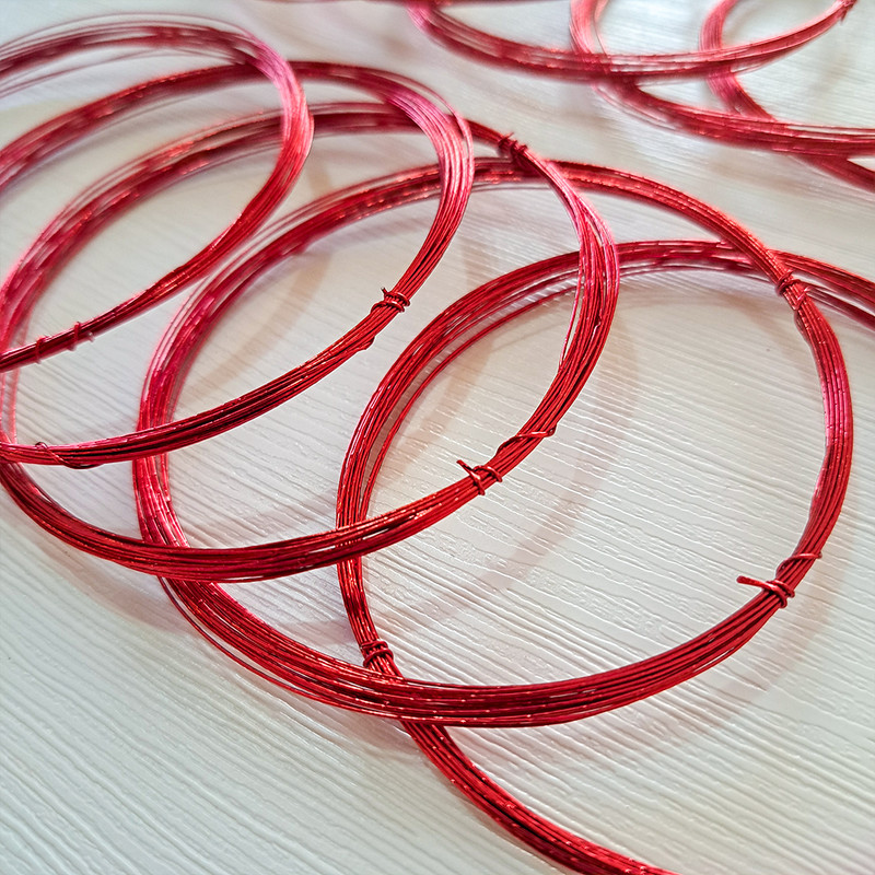 سیم گلسازی بسیار نازک با رنگ قرمز زیبا در تهیه گیفت و کارهای هنری مصرف دارد. طول سیم 5 متر بوده و قطر سیم حدود یک دهم میلی متر می باشد.