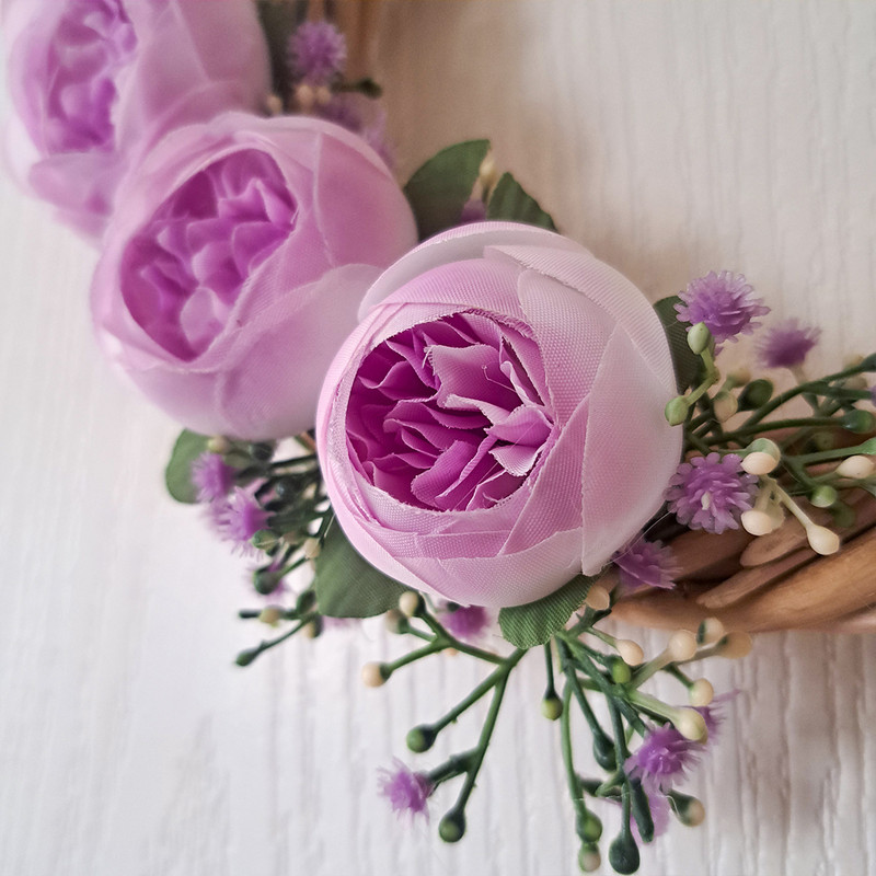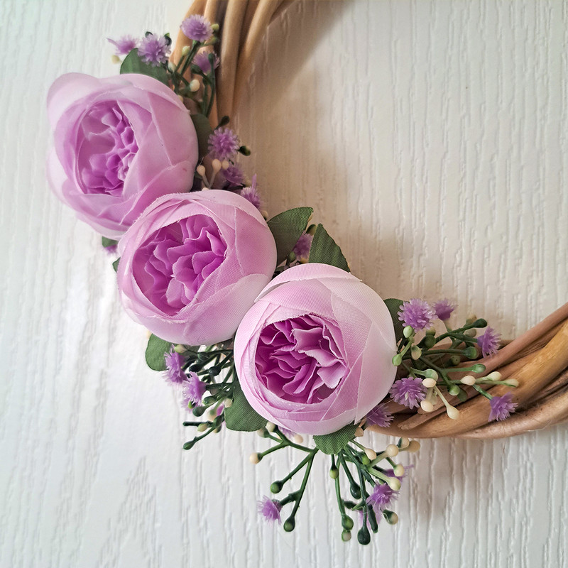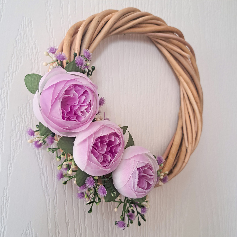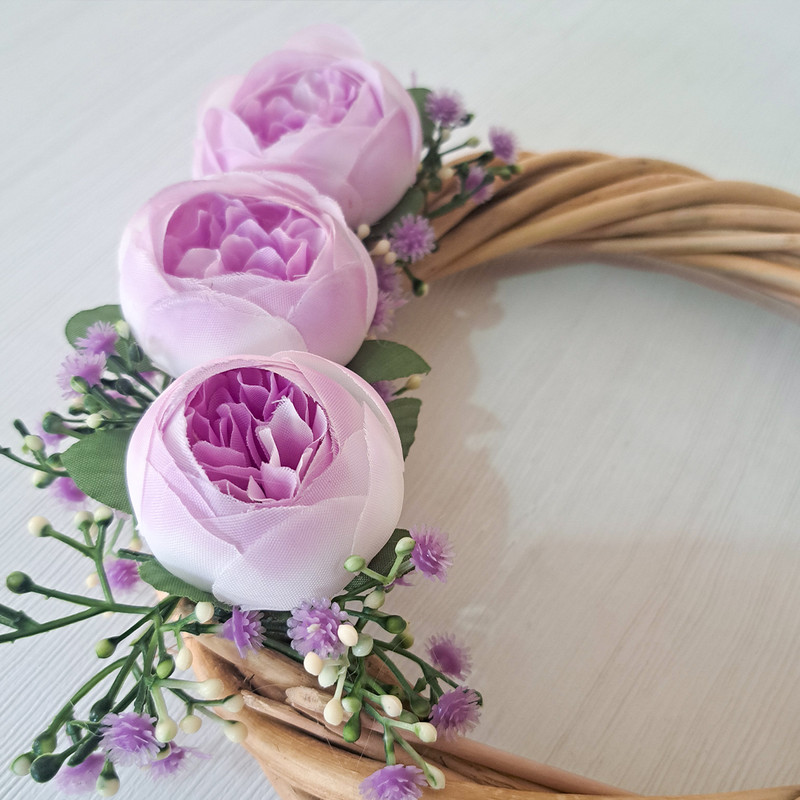 سایر توضیحاتحلقه در زیبا مناسب آویز و درب، رنگ گلهای پیونی و عروس در چهار رنگ بنفش، صورتی، کرم و آبی تقدیمتان می شود.ابعاد20.5x19x6 سانتیمتر